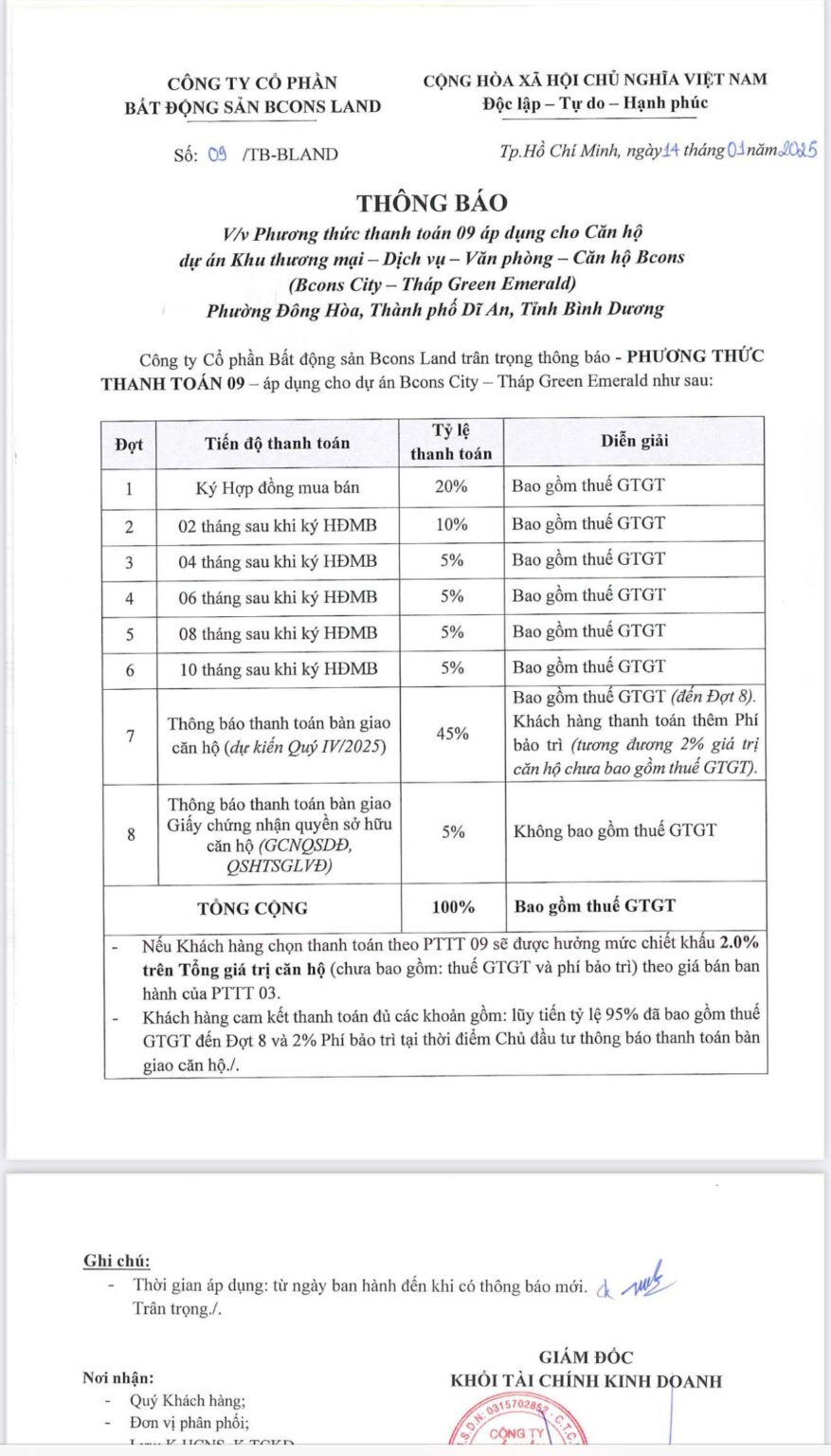 | Dự kiến bàn giao | Qúy 4/2025 |