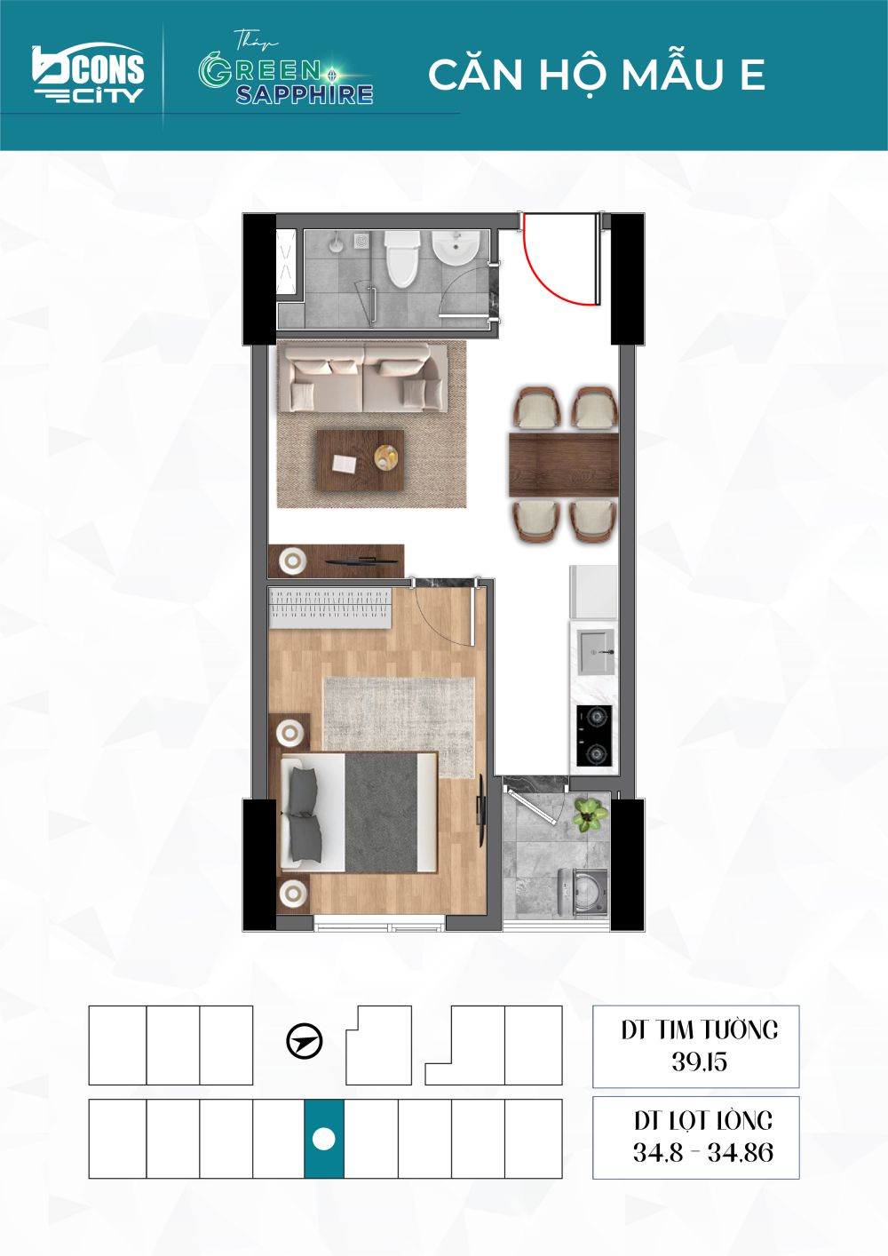 | Căn 1PN – 39m2 | 1.7 tỷ gồm VAT |