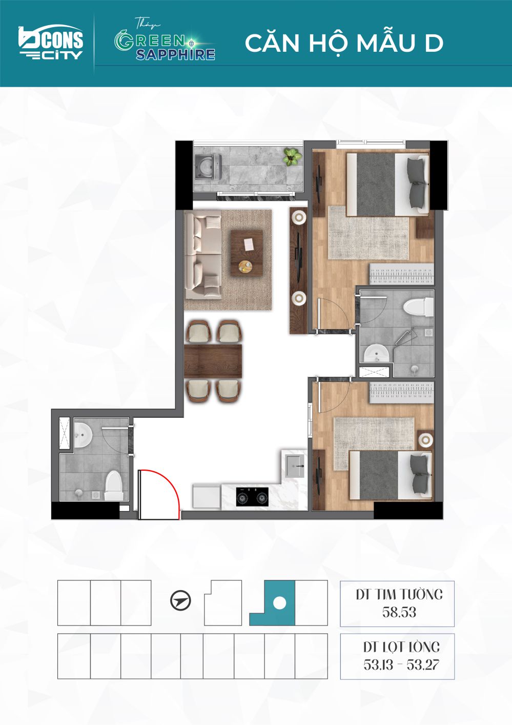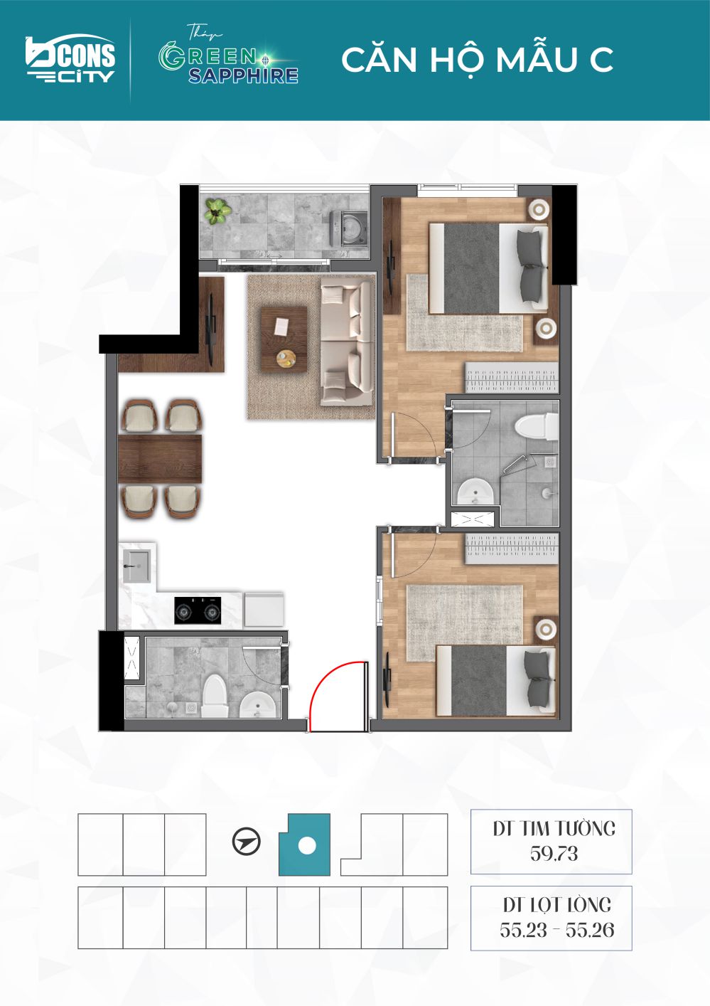 | Căn 2PN – 56 – 60m2 | 2.36 – 2.45 tỷ gồm VAT |