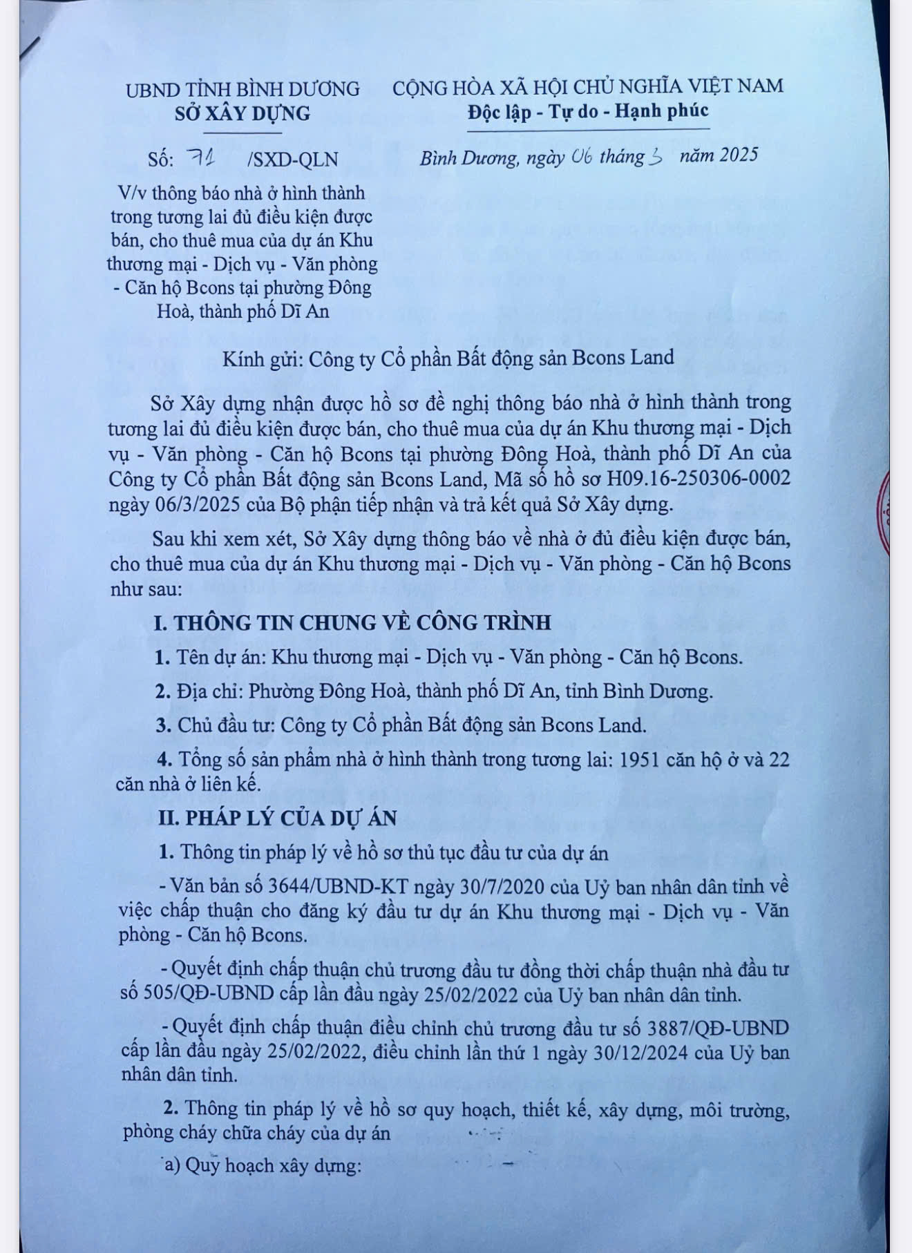 | Tên dự án: | DỰ ÁN CHUNG CƯ BCONS CITY |